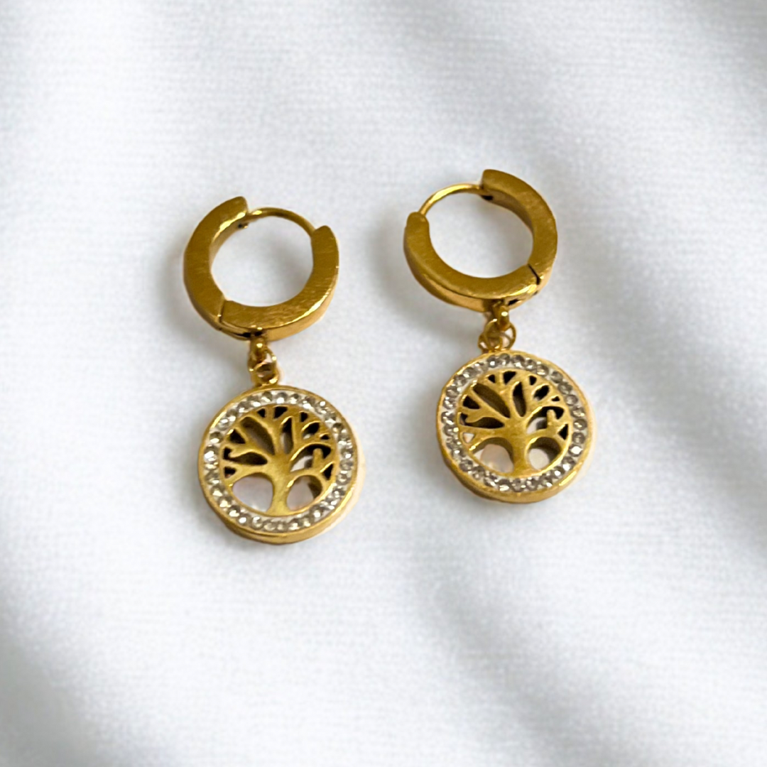 - Design: Tree of Life charm with fine hoop and chain details